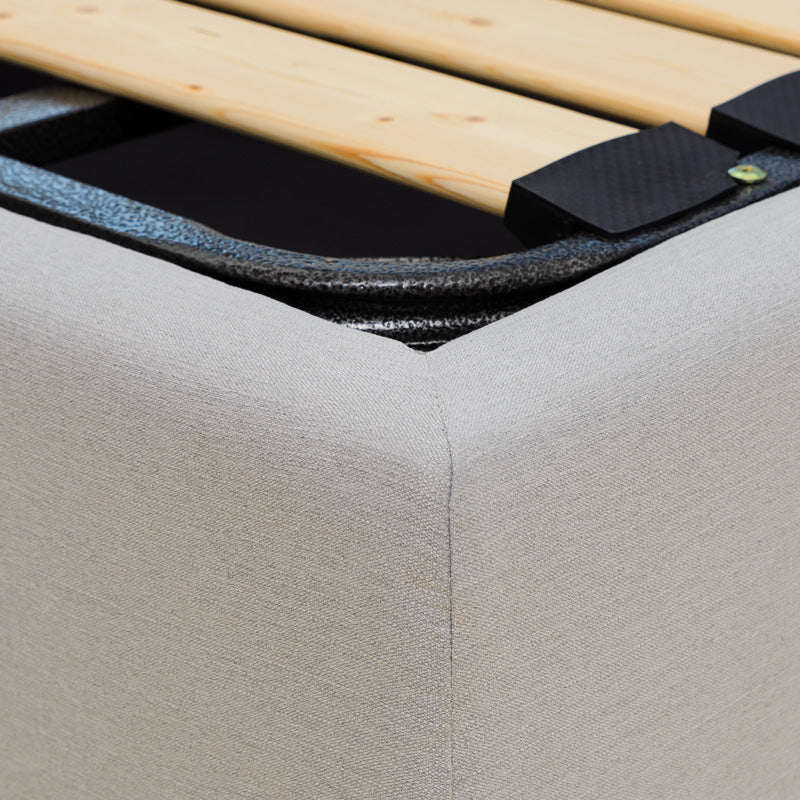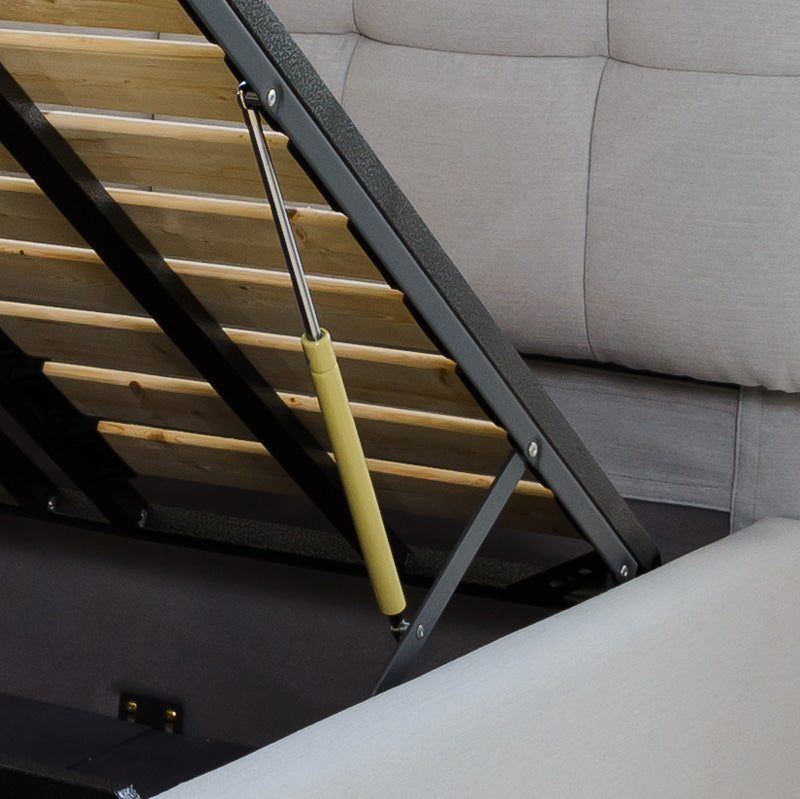 油壓儲物床採用柔軟優質布料和堅固木條製成,配上以手工簇絨製造的床頭板,既舒適且支撐力強。