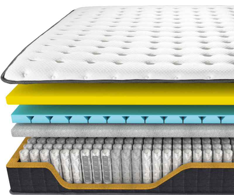 From top to bottom, each layer in the Hush Mattress was meticulously designed to move progressively from plush comfort to firm support.