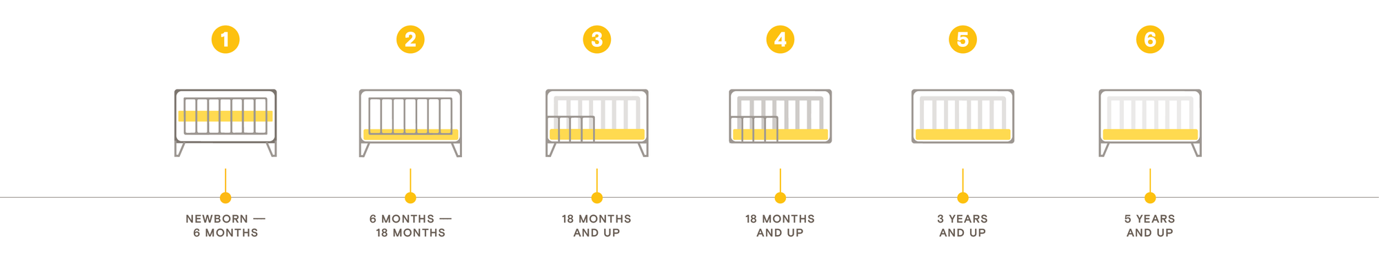 嬰兒床和搖籃都是合適和安全的選擇,但建議 4-6 個月時將孩子過渡到嬰幼兒床。我們的多合一嬰幼兒床提供多種調節,從嬰兒期到幼兒期和更長時間的使用,隨著你的小豆丁一起成長。